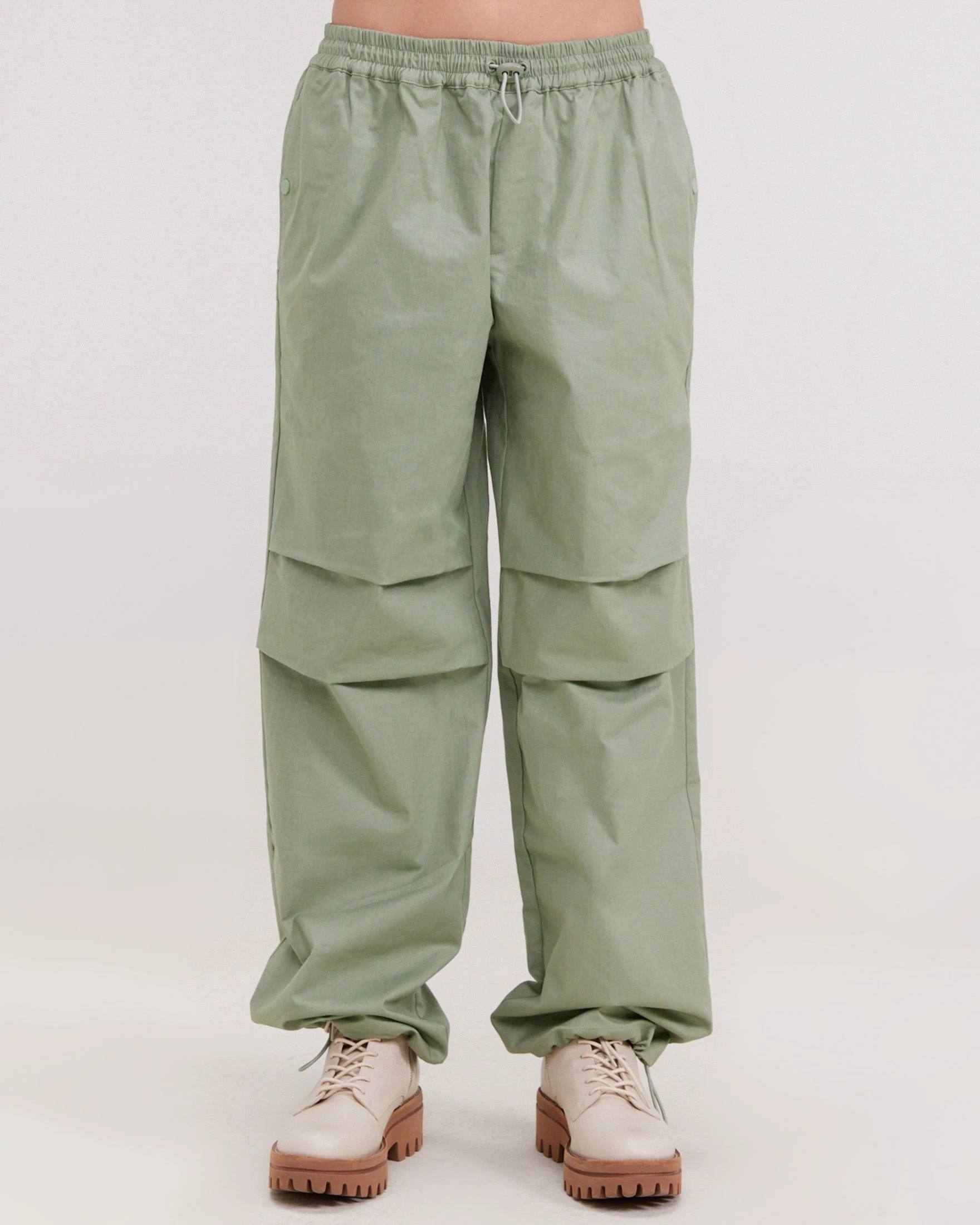 These new utility pants feature a ton of details including an elastic waistband with a tonal toggle, slit pockets on each side, double darts on the knees, and an adjustable toggle on the cuff so you can wear these pants cinched or straight-leg.