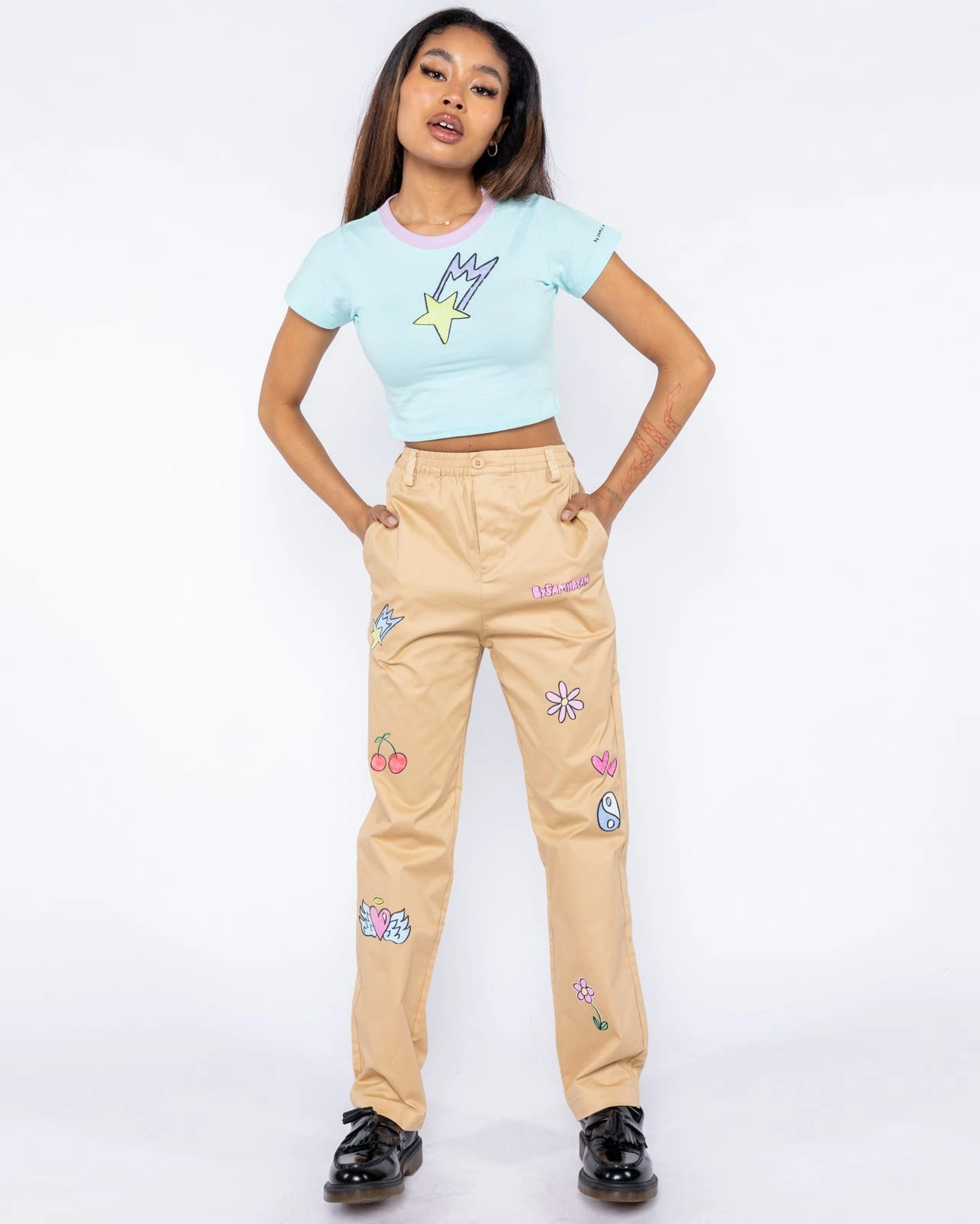 These hand-drawn doodles printed pants on the most perfect chino you’ll ever wear. Like a page out of our journal made just for you.