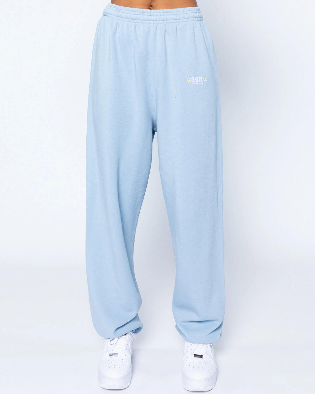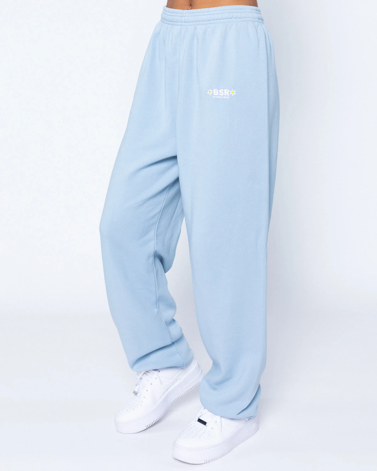 It’s time to get the BSR staples. Keep it casual in these unisex pigment dyedΒ light blueΒ sweatpants whichΒ feature an embroidered BSR logo on the leftΒ thigh.