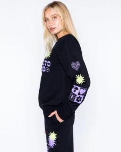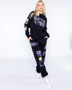 Keep it cute in this black crewneck that has screen-printed designs on the front chest and both sleeves. Complete the fit with the matching black sweatpants!Β