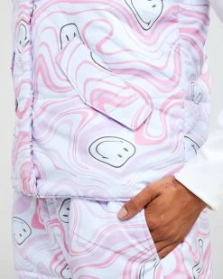 This cropped puffer jacket has pastel panels throughout, a cropped fit, a mock neck collar, and slit pockets for you to keep cozy.