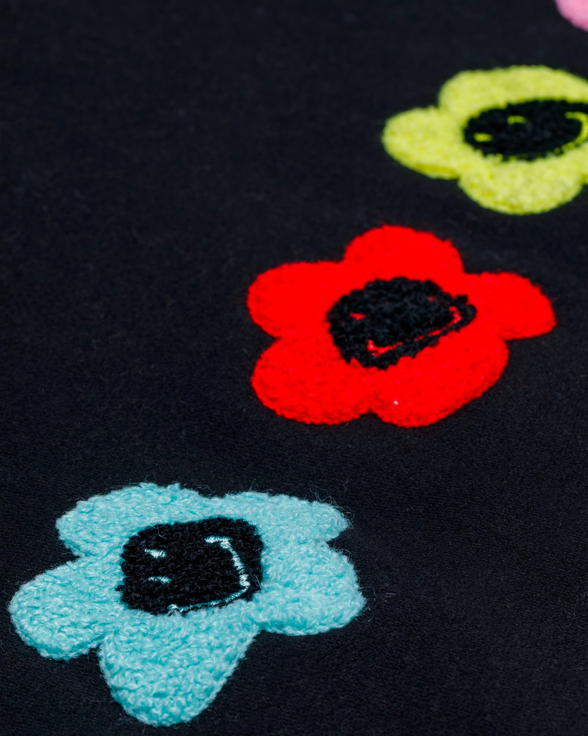 - Chenille patches on front chest