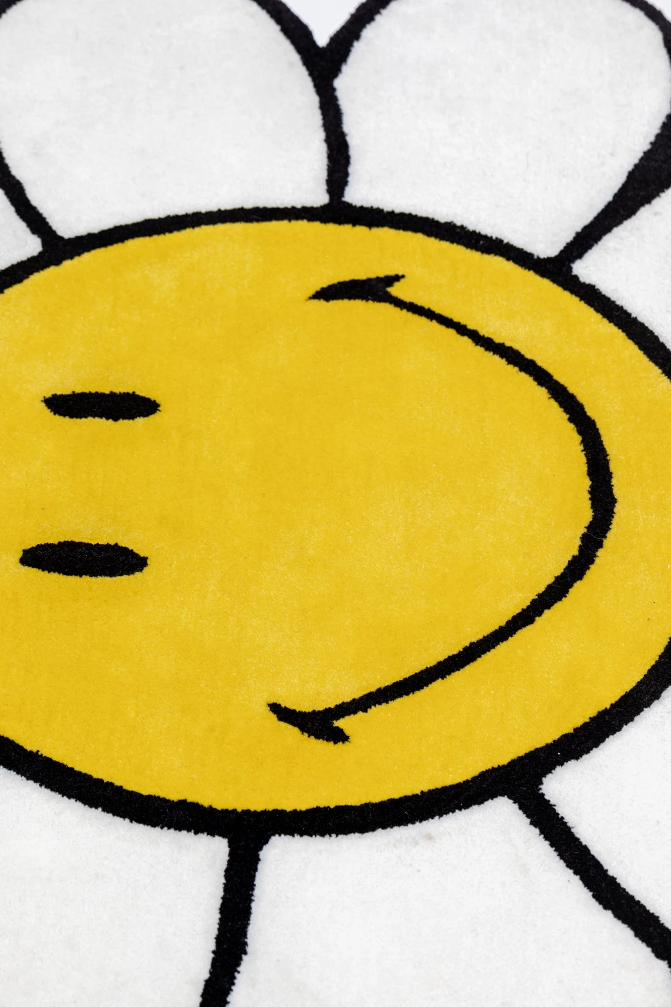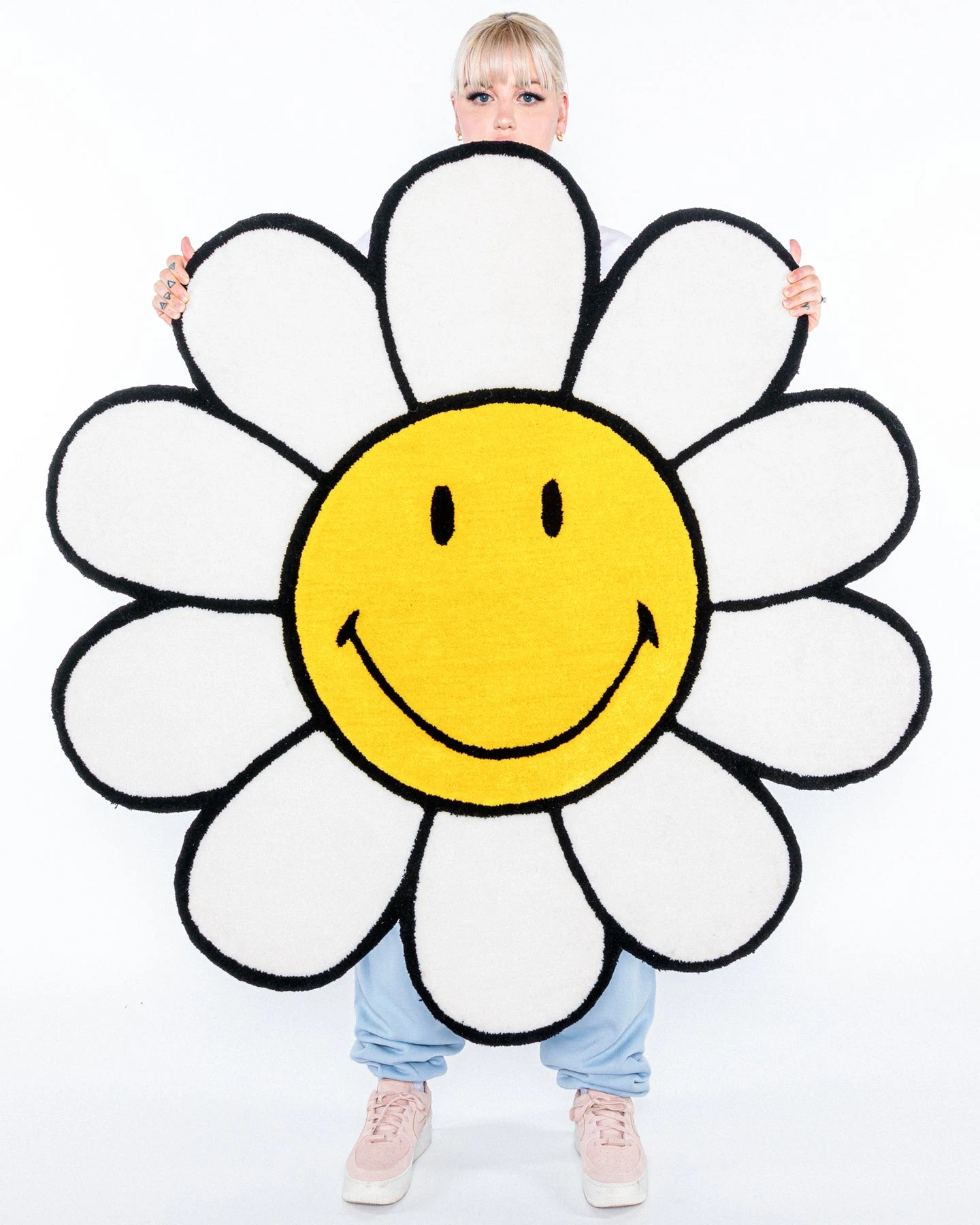 There is no better way to bring a happy vibe into your house than with this newย handmade Smiley daisy rug! This rug is 4 feet wide and would look absolutely perfect in your living room, closet, or right in the entryway to your home.ย