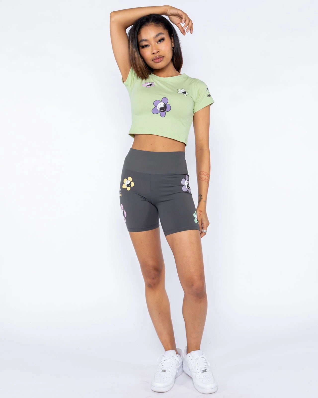 Our new biker shorts will fit youย firmly and hug your body. They are stretchy, soft, and have the cutest designs printed on the thighs.ย