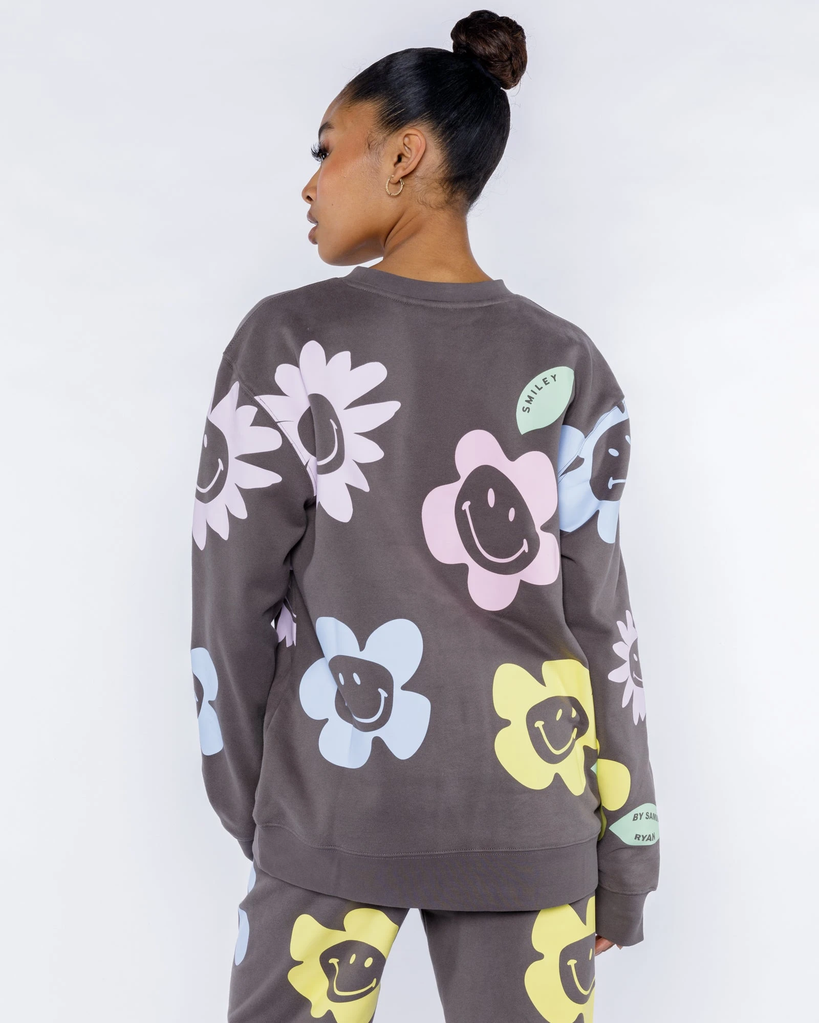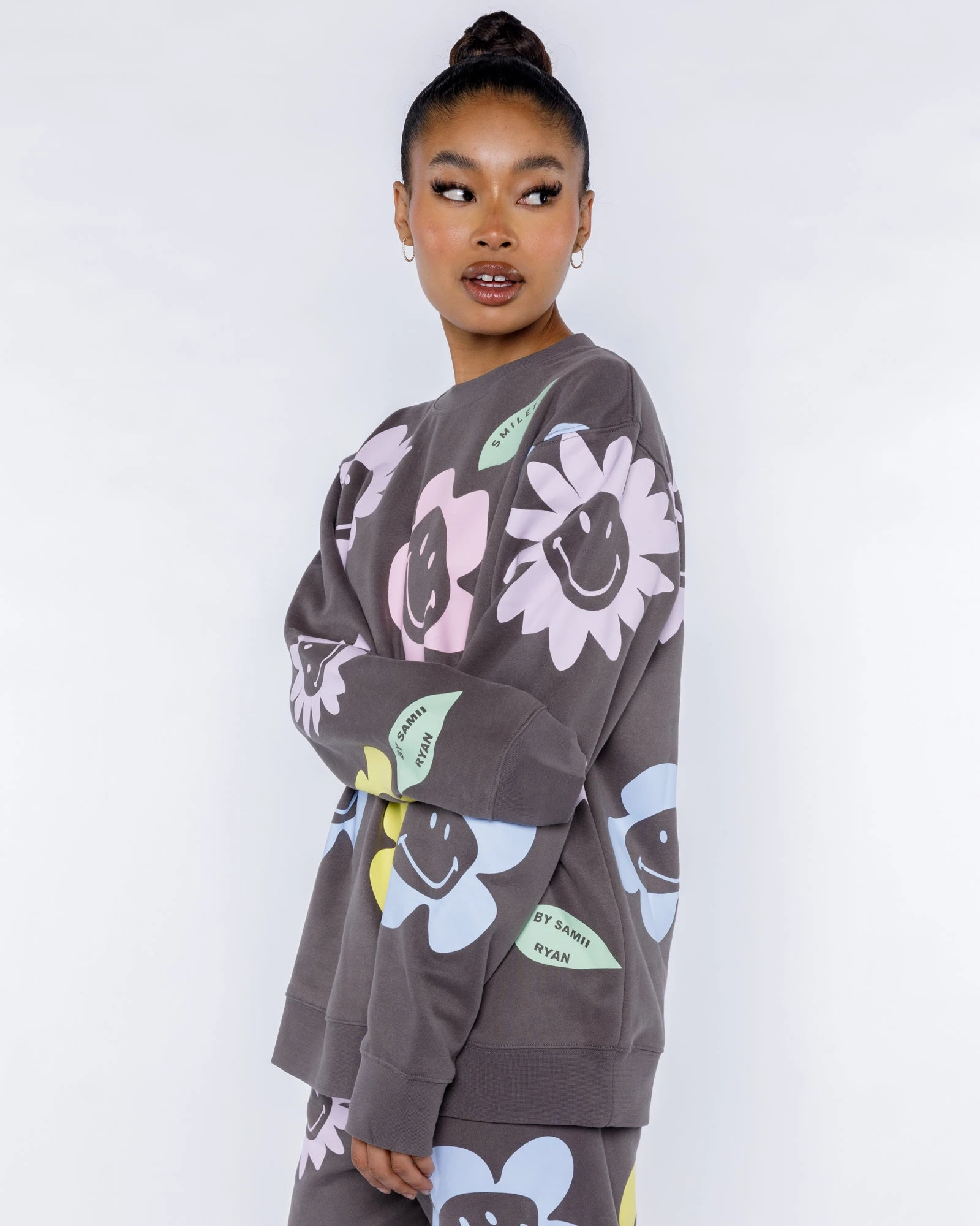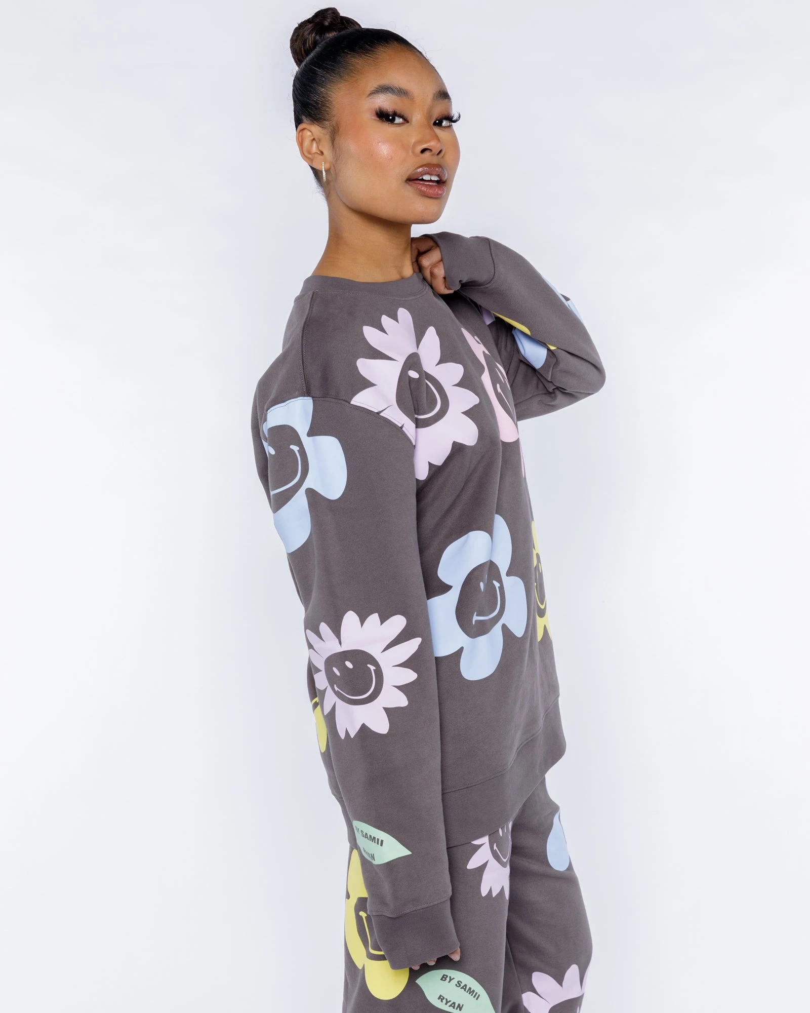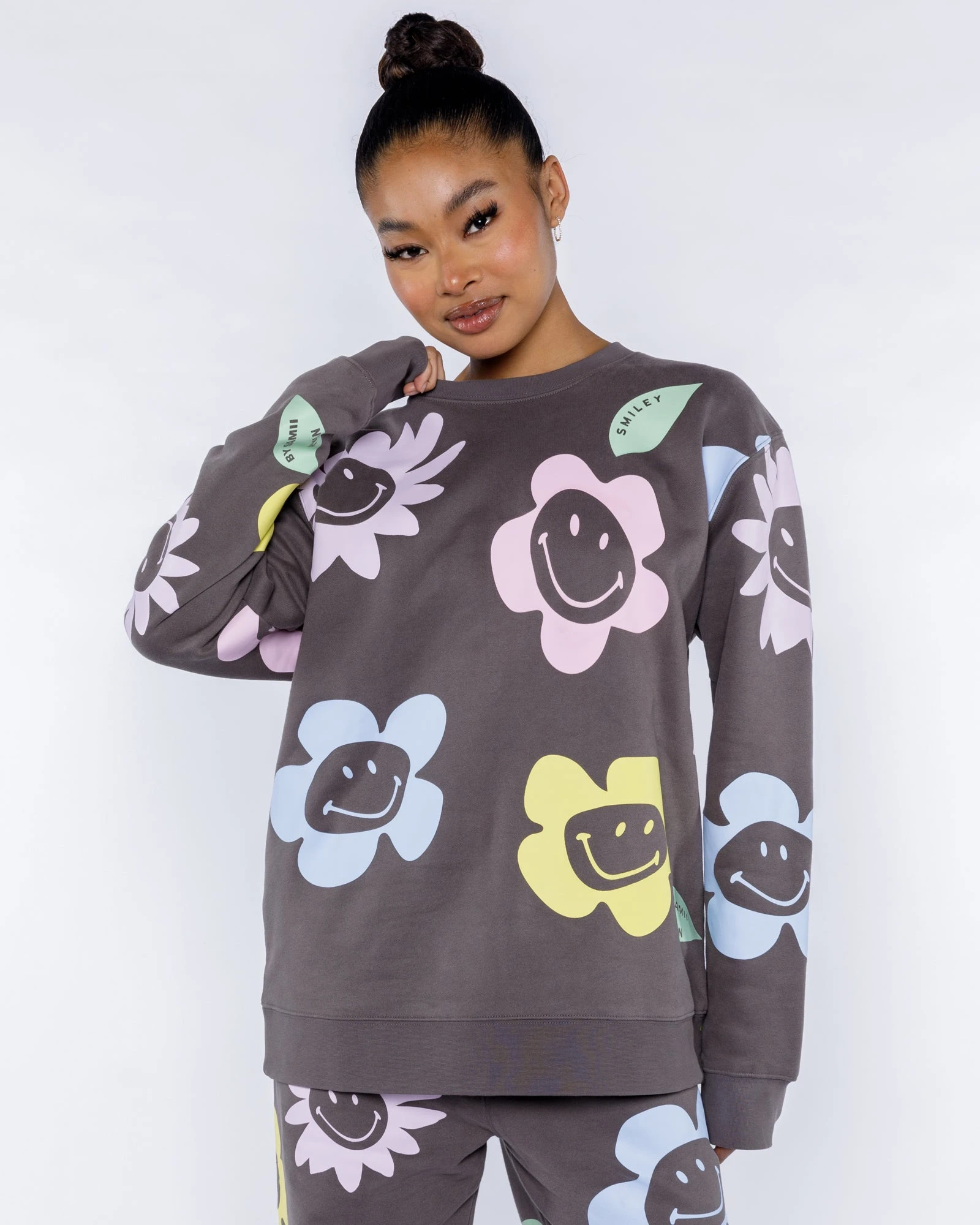 Soft and cute.. the two things we’re best at. Keep cozy this spring in this grey crewneck that has a screen-printed happy daisy design all over the top.ย Bring some smiles to your day in this new crew.