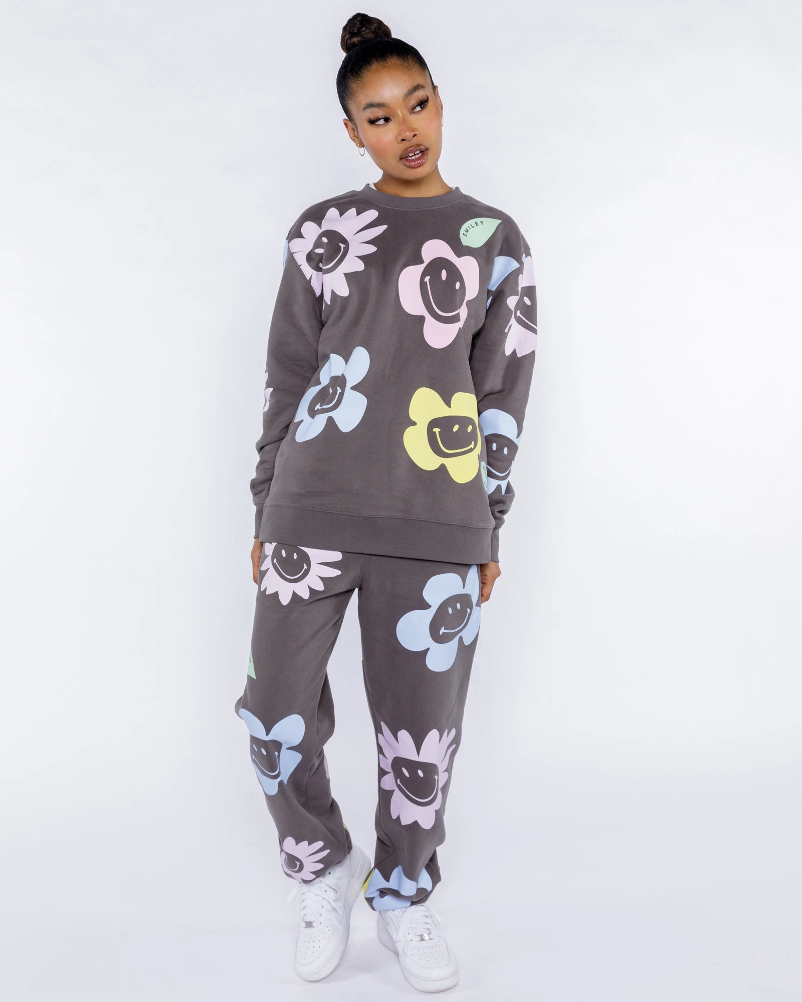 The softest sweatpants you’ll ever wear.. trust us. These happy sweatpants have slit pockets and an all-over smiley daisy print on the front and back. Get the full matching kit by adding the crewneck!