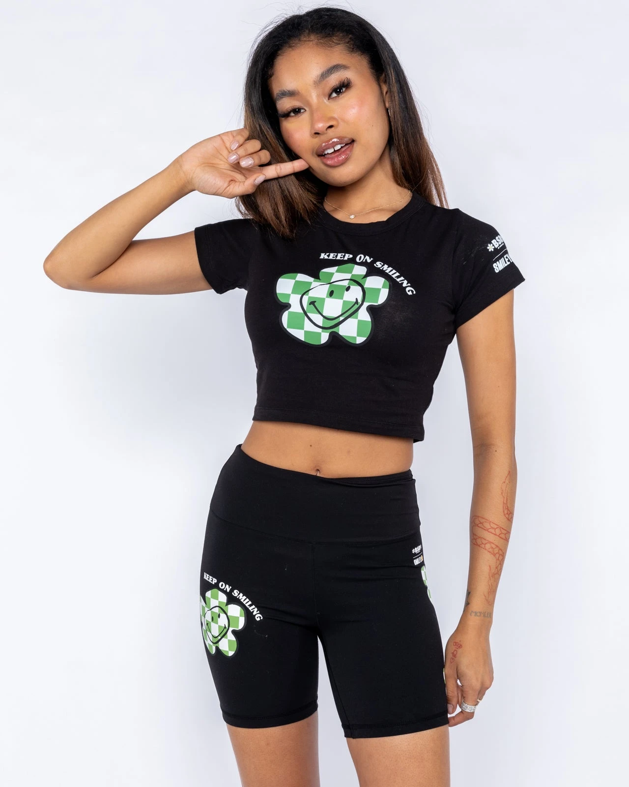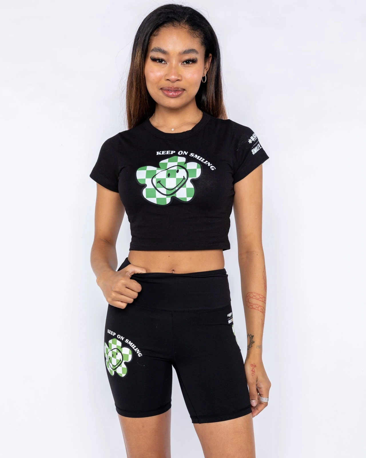 This is your reminder to keep on smiling. Our new baby tee is the perfect piece to bring positivity and happiness into your wardrobe.