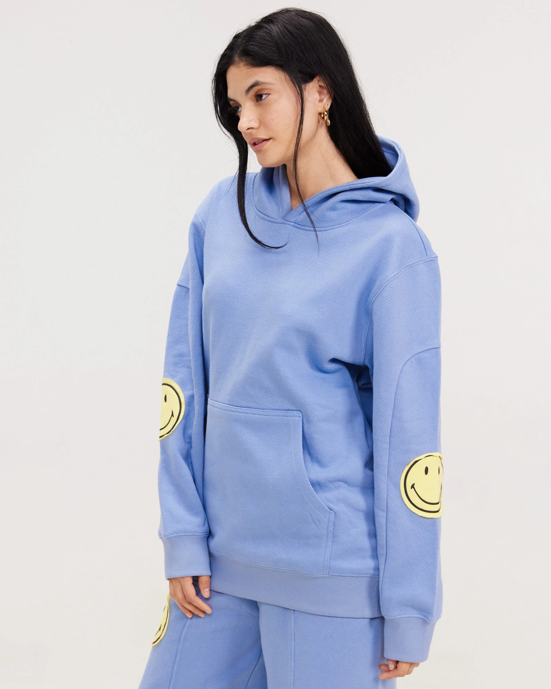 Our latest hoodie is made from a super comfy heavyweight french terry fabric that has raw edge smiley patches on the elbows.ย Designedย with comfort in mind, this is going to keep you cozy all season.