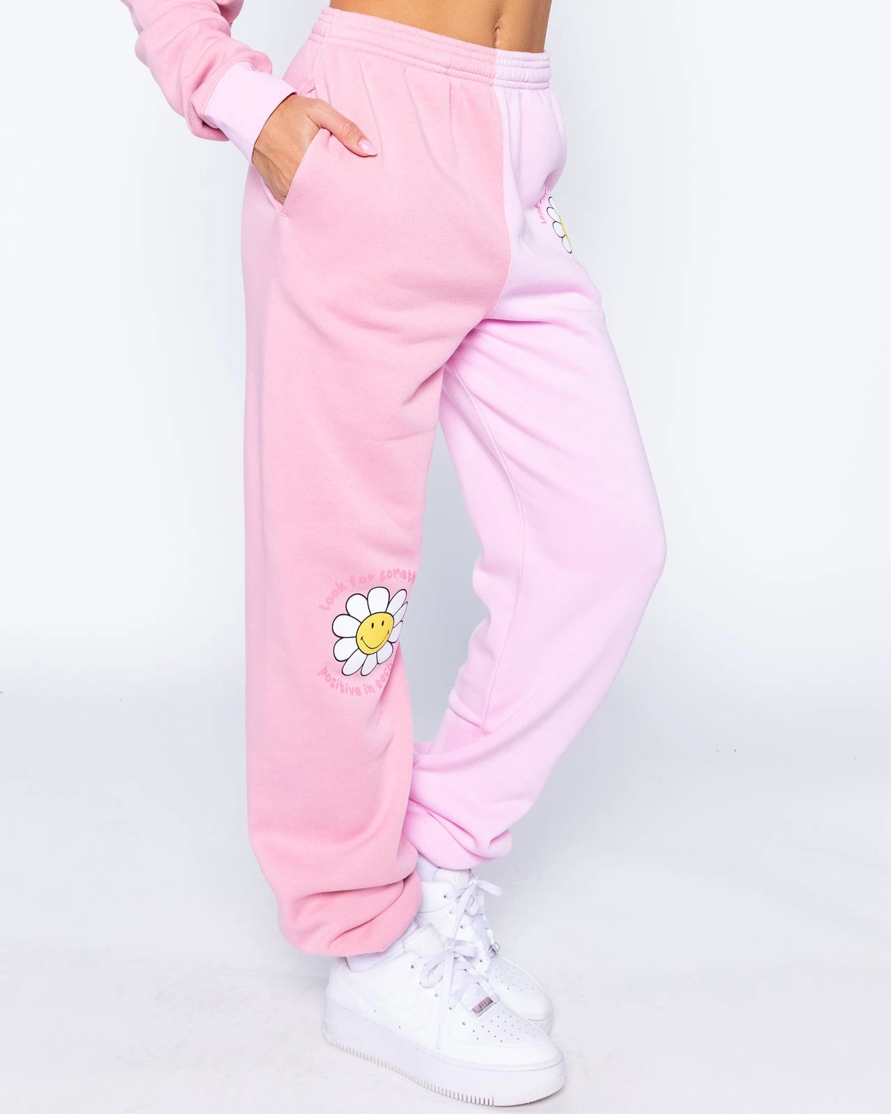 Look for something positive in each day, it could be the simplest thing, even hearing the birds chirp! Things will get better, they always will. Keep cozy and cute in these Smiley color block sweatpants, which features a super soft fabric and comfy fit.